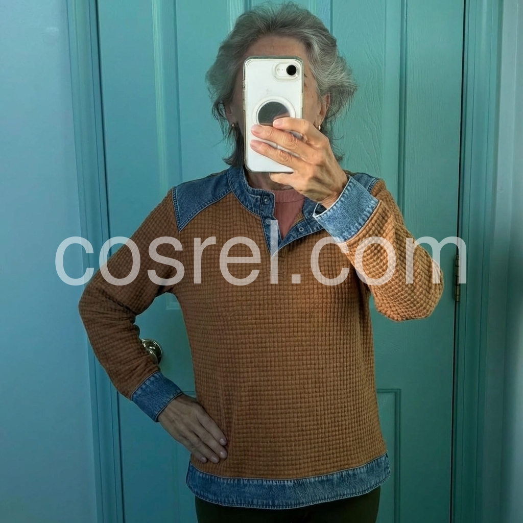 I’m really impressed with this top. The waffle pattern gives it a unique look, and the denim contrast makes it stand out in a good way. I also like that it’s easy to match with different outfits—perfect for someone who wants both style and comfort.