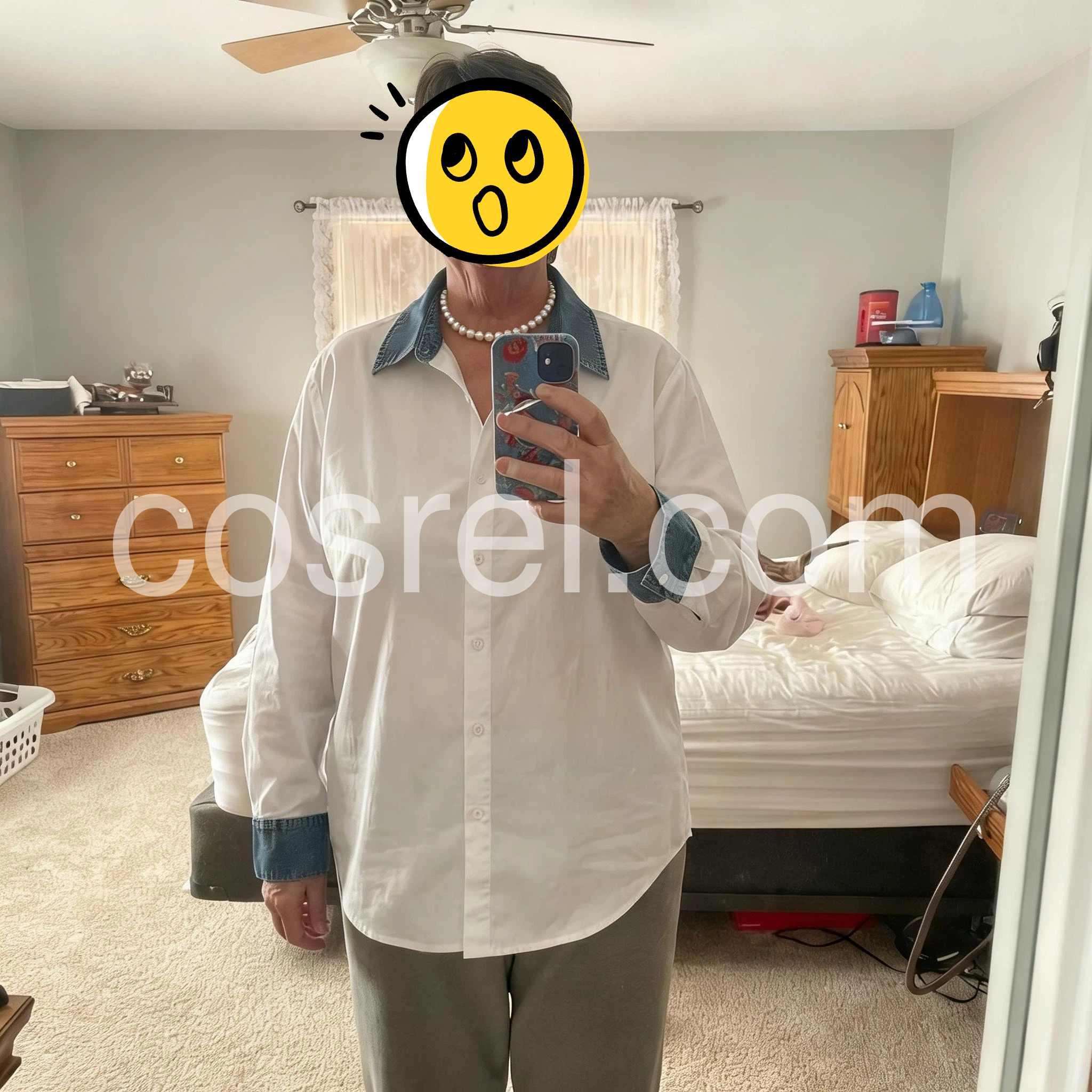 - Neckline: Collared