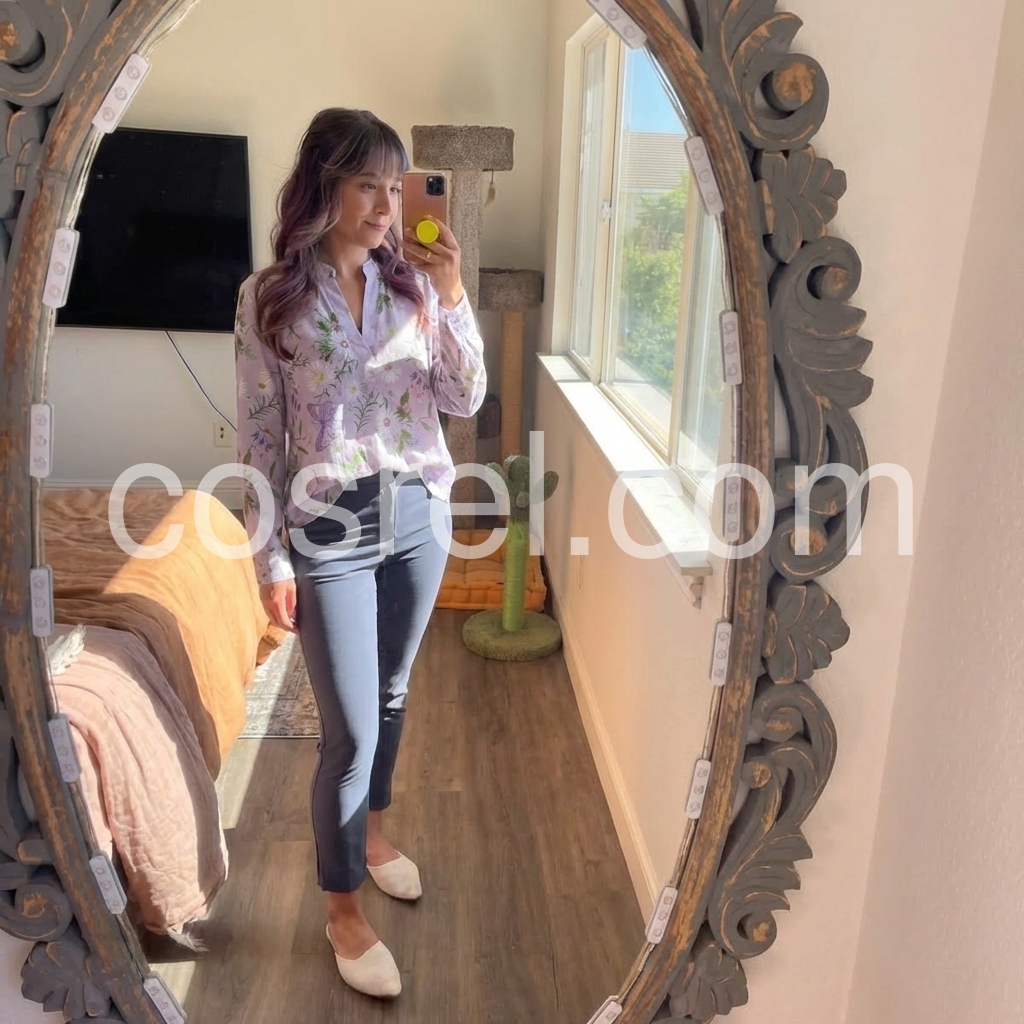 I absolutely love this top! The lavender color is so pretty and the butterfly and floral print is perfect for spring. It fits true to size and looks great with jeans.